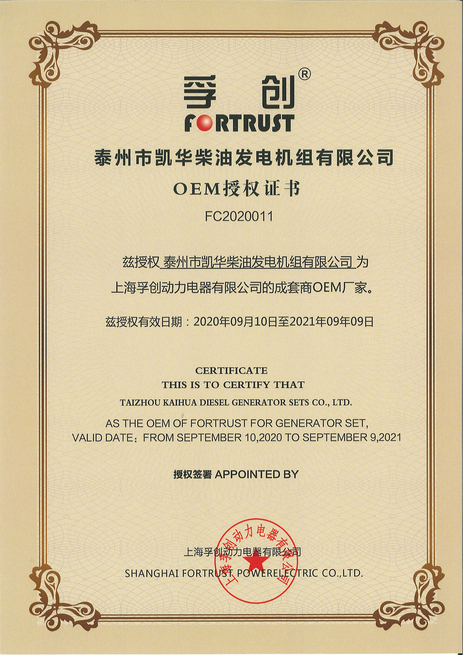 泰州市凱華柴油發電機組有限公司創建于2003年,是一家集柴油發電機組的研發、生產、銷售為一體的高新技術民營企業,公司目前注冊資本金11800萬元人民幣,生產基地占地六十畝,現有各類高素質員工一百多名,專業技術人員達46人,其中高級技術人員16人,年銷售額近6億元。公司主營產品:3~3000KW陸用柴油發電機組,15~600KW移動拖車電站,12~1000KW船用應急柴油發電機組,各種靜音型、中高壓、多機并聯、燃氣等特種機組以及進口系列柴油發電機組,可滿足不同客戶的不同電力需求,還可滿足用戶不同電壓、不同頻率的要求。
